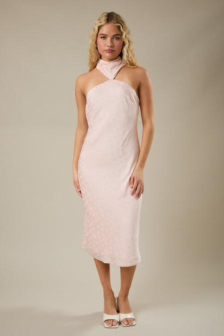 Halter Neck Polka Dot Satin Midi