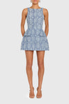 Stay sweet in the Clarissa Romper. Crafted from embroidered chambray, this boatneck mini features a sculpted skirt with charming pocket details. Pair with strappy sandals for a warm-weather look that’s easy and cute.
