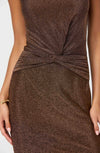 With a delicate twist front detail and metallic shine, this maxi dress was made for celebrations and evening plans