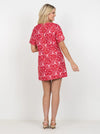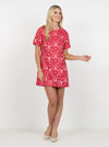 The Royale Shift in Cheeky Cheetah is a classic shift dress reimagined with a playful pink-and-red design featuring unexpected cheetah faces. Designed with a crew neckline, short sleeves with gold button detail, and flattering princess seams, it offers a tailored yet loosely structured silhouette. An easy everyday shape with an elevated twist, perfect for making a statement in comfort this holiday season.