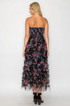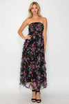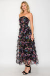 Become a living work of art in this stunning strapless floral gown. A painterly bouquet of wildflowers blooms across delicate, textured tulle, creating a three-dimensional effect that moves with a whisper of otherworldly grace. The elegant strapless neckline and flattering, fitted bodice flow into a magnificent, ankle-grazing skirt, promising a silhouette that is both dramatic and timelessly romantic. This is the dress you'll wear to create your own myths and legends.