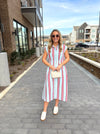 Elevate your everyday rotation with this charming striped midi dress—the perfect blend of timeless pattern and modern silhouette. Crisp horizontal stripes create visual interest while the midi length offers versatile styling for brunch dates, office days, or weekend adventures. Pair it with sneakers for casual ease or dress it up with heels and a blazer for polished sophistication. A wardrobe essential that works as hard as you do, this piece transitions seamlessly from season to season with effortless grace.