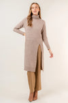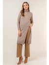 Wrap yourself in cozy sophistication with this turtle neck slit long sweater. The elongated silhouette flatters your frame while the strategic side slits add a flirty, modern twist. Perfect for layering over basics or styling solo, this versatile piece transitions seamlessly from casual coffee runs to evening outings. The soft, comfortable knit keeps you warm without the bulk, making it an instant wardrobe favorite that works year-round.