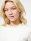 When your sweater doubles as jewelry. The Embellished Neck Short Sleeve Sweater is crafted from a cream-colored cable knit and finished with delicate pearl detailing around the neckline. It’s equal parts cozy and dressy, so you can wear it to work, then keep it on for dinner.
