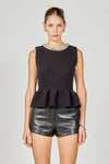 Elevate your everyday style with this charming peplum top, where a delicate jewel-trimmed neckline adds just the right touch of sparkle. The fitted bodice flows into a playful peplum hem that flatters your silhouette while keeping things fun and flirty. Perfect for dressing up a casual day or adding personality to your work wardrobe, this piece proves that the smallest details make the biggest impact. Mix and match with your favorite bottoms for endless outfit possibilities.