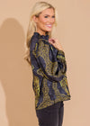 The Phoebe top is your new perfect grab-and-go top! It will pair perfectly with your favorite pair of slacks or shorts to complete the look! The Phoebe features a v-neck, cuffed sleeve, and a ruffled collar stand.