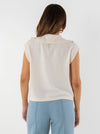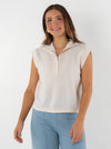 The Poppy Pullover Vest in Eggnog is a versatile piece designed for layering or wearing on its own. Crafted in 100% cashmere, it offers a soft, elevated feel with a relaxed silhouette. The oversized fold collar is accented by a gold logo zip closure, adding a luxe finish. Clean armhole lines and a slightly boxy cut give it a modern edge, while the hem sits neatly at the waist for easy styling with both trousers and skirts.