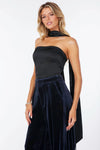 Easy elegance. The Hailey Top is crafted from a luxe satin, featuring a flattering built-in scarf that drapes effortlessly over the shoulder, designed with elongated length for a hint of drama. Pair this top with black trousers and strappy heels for a sleek look.