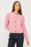 Comfort elevated to an art form, the Coralee is a sumptuously soft alpaca-knit cardigan with romantic soutache rosette detailing. It features front button closures, a relaxed fit, and long sleeves.