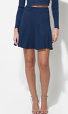 This mini skirt is crafted from a soft, stretchable rib knit fabric in a striking Red color, providing warmth and a beautiful texture. The silhouette is fitted at the waist and hips, transitioning into a flirty flare thanks to cleverly placed godet panels inserted into the hemline.
