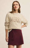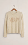 Shimmering metallic yarns elevate this style. The playful “Merry” intarsia adds a festive touch, making it the sweater you’ll wear for holiday parties and well beyond.