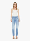 This slim straight-leg was adopted from our men’s line and features a mid rise, button fly, low-set back pockets, a 30-inch inseam and a clean hem. Made from denim with a touch of stretch, Baubles And Trinkets is a light blue with whiskering and fading at the knees.