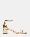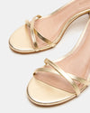 The RAE GOLD LEATHER strappy block heel sandal combines modern style with reliable comfort. Crafted from quality materials, it features slender straps that provide secure support while highlighting the foot's natural shape. The sturdy block heel ensures stability and ease of wear, making it ideal for both day and evening occasions where you want to look polished without sacrificing comfort. Perfectly balancing sophistication and practicality, this sandal is an expert choice for enhancing your footwear collection.
