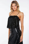 The Sublime Cami is defined by its allover sequin detail, creating a high-impact silhouette. Perfect on its own or layered under a chic blazer, it's the ultimate statement-making top. Pair this piece with its coordinating Sublime Skirt for statement elegance or with jeans for night out.