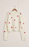Finished with delicate bow embroidery across soft yarns, its relaxed fit makes it the perfect festive layering piece.