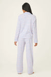 A pop of playful leopard is always a good idea—especially in soft cotton-modal jersey. This button-down pajama set pairs a relaxed top with easy drawstring pants, all splashed in a sky-blue and soft-coral leopard print that gives a zippy twist to classic muted tones. Finished with contrast piping and a breezy full-length fit, it’s cozy, colorful, and made to brighten your wind-down routine.